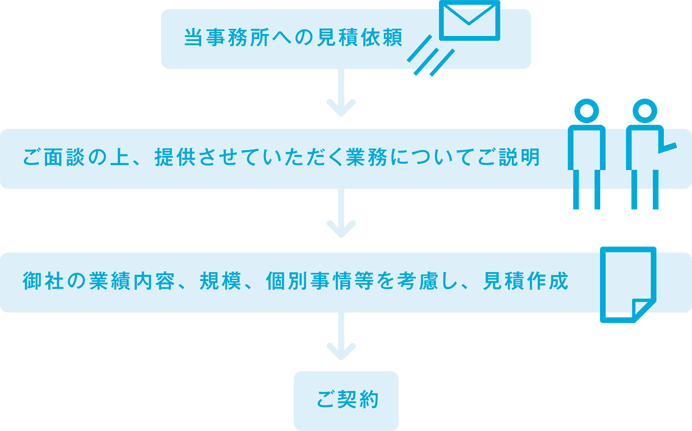税理士報酬に「安さ」のみをお求めになる方のご要望には、残念ながらお応えできかねます。ご縁あってお付き合いをさせていただいたお客様の繁栄を心から願い、親身で適切なアドバイスを提供していくためには、一定の業務水準を維持するコストが必要であります。とはいえ、当事務所の報酬金額は世間相場より決して高額であるものではございません。また「創業間もない」や、「現在は業績悪化中であるが、経営改善に向け努力中」であるなど、お客様の個別事情を鑑みて一定期間における料金面でのご対応はもちろん致しております。まずは、お気軽にお問い合わせ下さいますと幸いです。